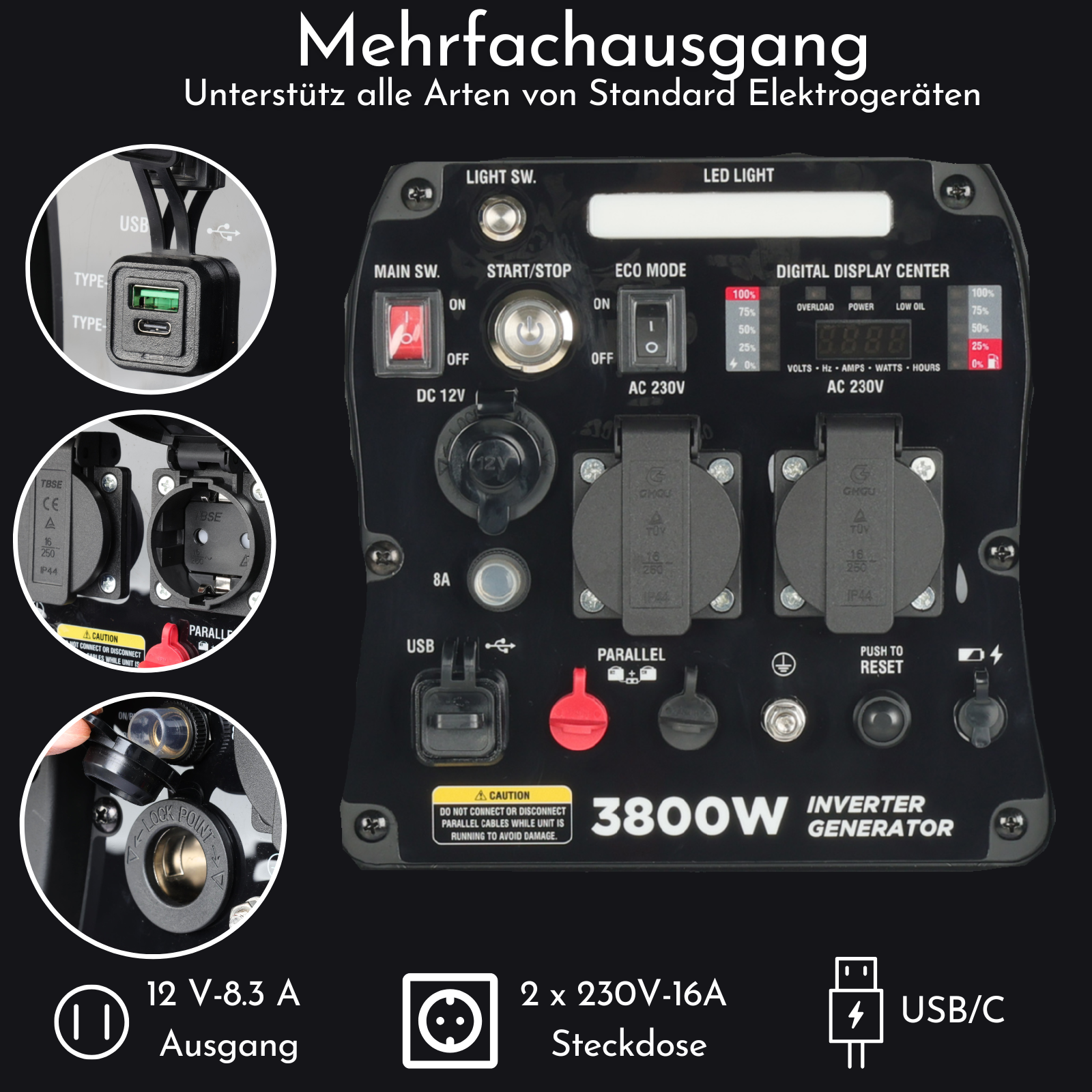 ULT-3800 Inverter Stromgenerator 3800W - 27kg - Benzin-Stromerzeuger - Notstromaggregat - mit Elektrostarter